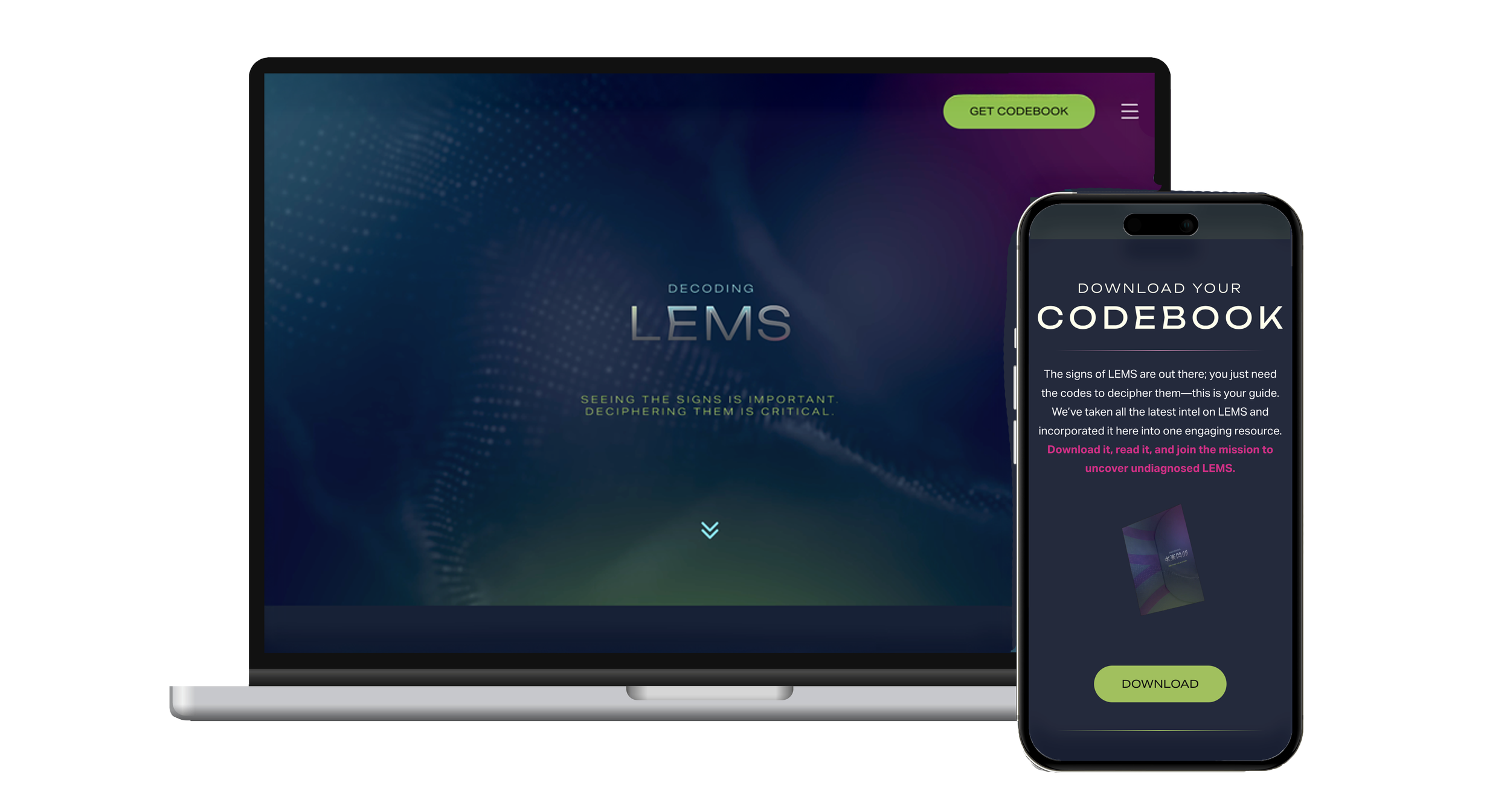 Decoding LEMS invited HCPs into a digital detective experience, using a custom “glyphabet” code to uncover clues about an ultra-rare disease.
